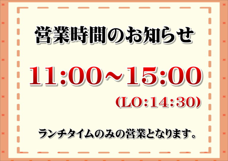 営業時間のお知らせ