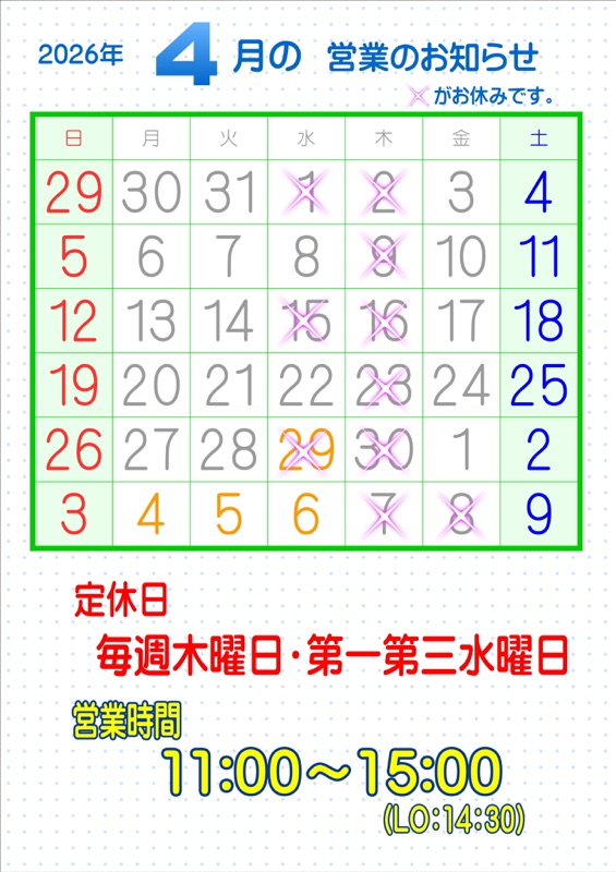4月営業カレンダー